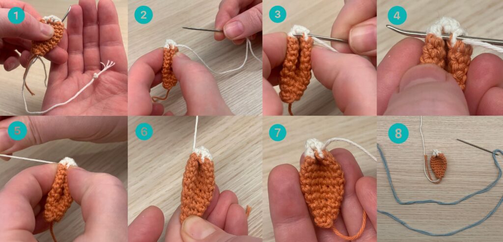 Jätä päättelylanka pitkäksi korvan muotoilua varten ja tee toinen korva.