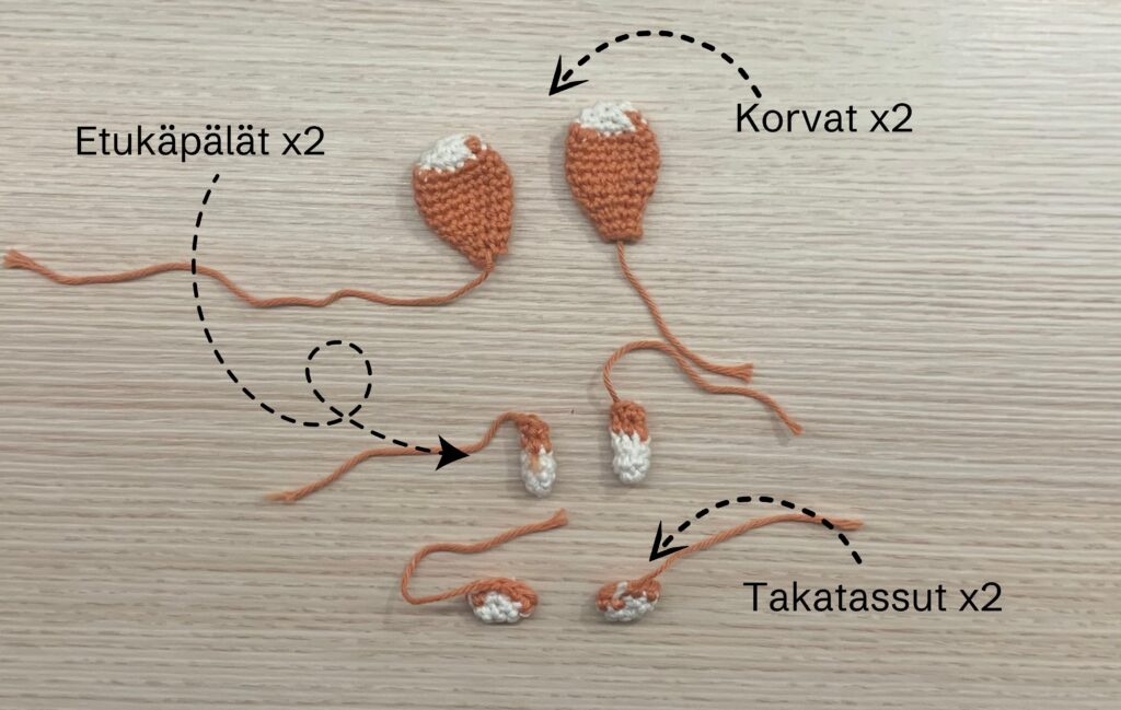 Kotaen joulukalenterin amiguruminurkkauksen toinen osa on vihdoin täällä! Viimeksi virkkasimme Tokille kaulaliinan, vatsan kuvioinnin ja kiinnitysnarun. Tällä kertaa teemme Tokin korvat, etukäpälät ja takatassut.
